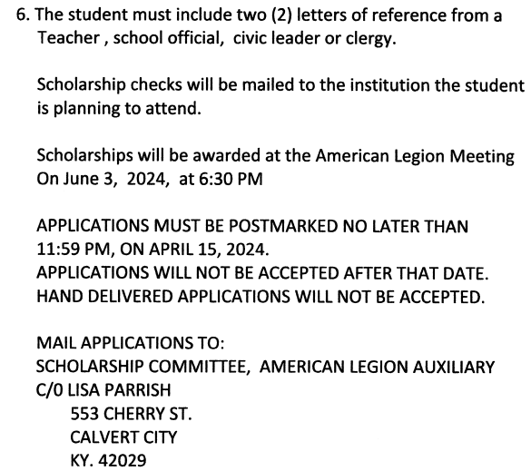 American Legion Auxiliary Unit 236 Scholarship 2024